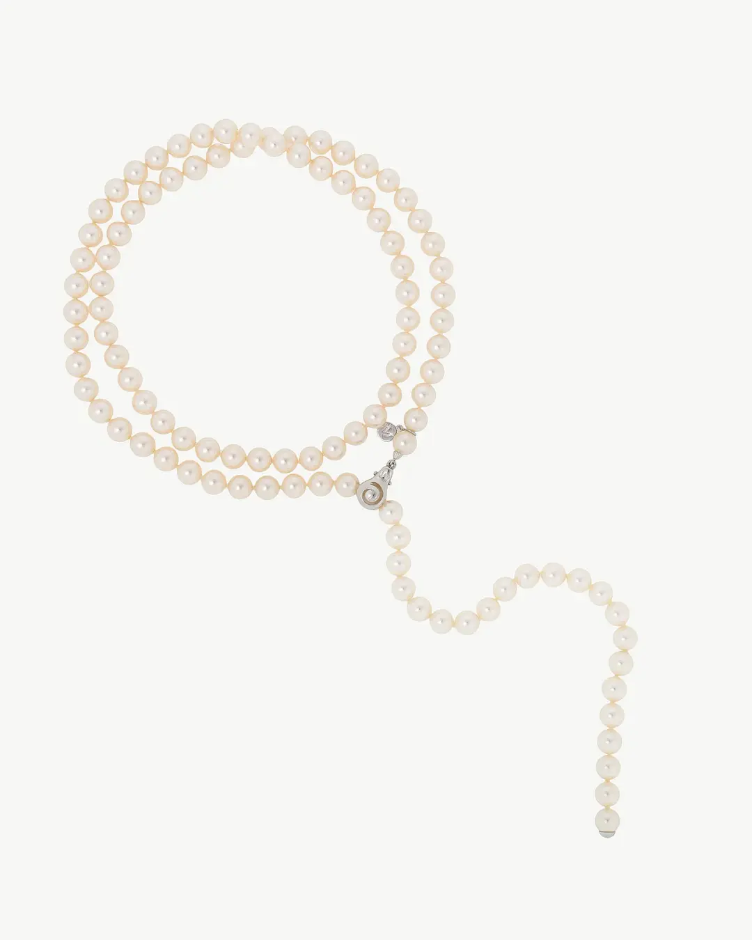 & Free ShippingОжерелье длиной 90 см с многопозиционной застежкой из родированного серебра, белые круглые жемчужины 8 мм. Классика, которая никогда не выйдет из моды.