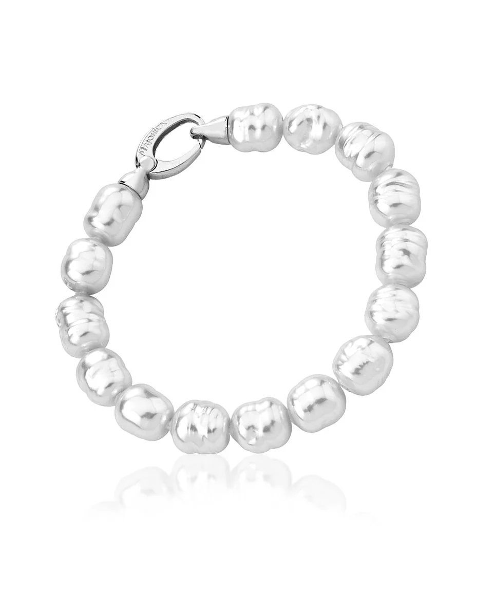 Браслет 19 см из родированного серебра, 8 мм белые барочные жемчужины. Украшения и жемчуг с романтическим и очень женственным дизайном.