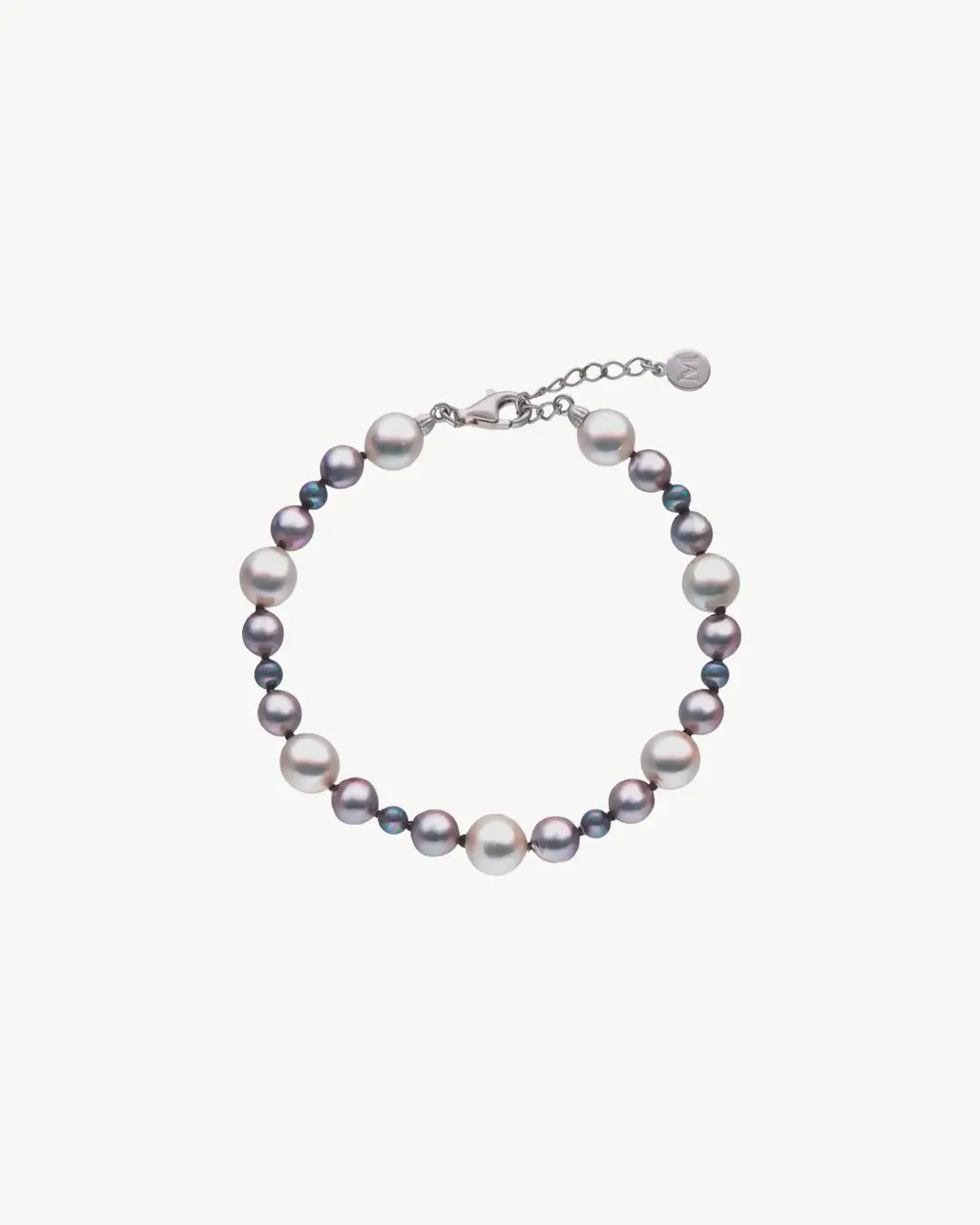 & Free ShippingБраслет длиной 19 см из родированного серебра с круглыми жемчужинами белого, бежевого и серого цветов размером от 4 до 8 мм.