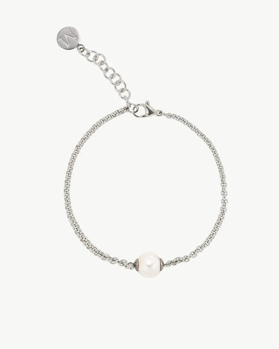 Браслет из стали с родиевым покрытием, 8-миллиметровый белый круглый жемчуг. Его дизайн обеспечивает свежий и универсальный вид, позволяя вам выразить свой индивидуальный стиль для любого случая.