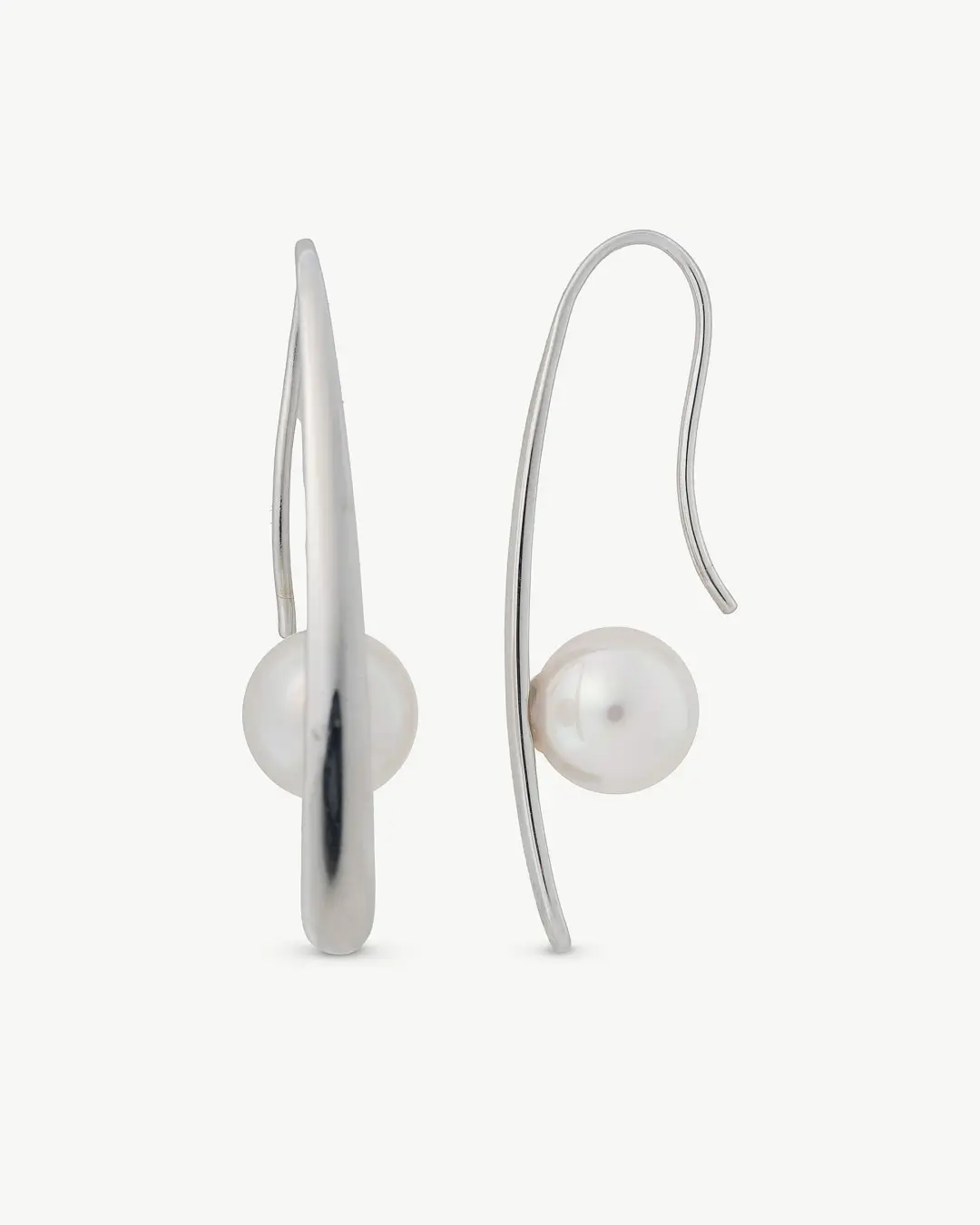 & Free ShippingДлинные серьги-крючки из родированного серебра с белыми круглыми жемчужинами 10 мм. Коллекция словно с другой планеты.
