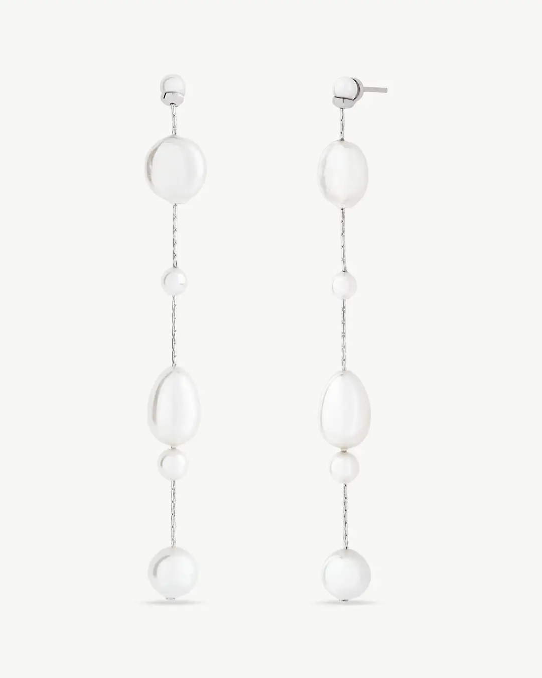 & Free ShippingДлинные серьги 8 см с застёжкой-шпилькой. Современный дизайн цепочки из жемчуга и стерлингового серебра. Украшены белыми жемчужинами ручной работы разных размеров и форм: круглыми, каплевидными и овальными 4, 5, 8, 9 и 10 мм.