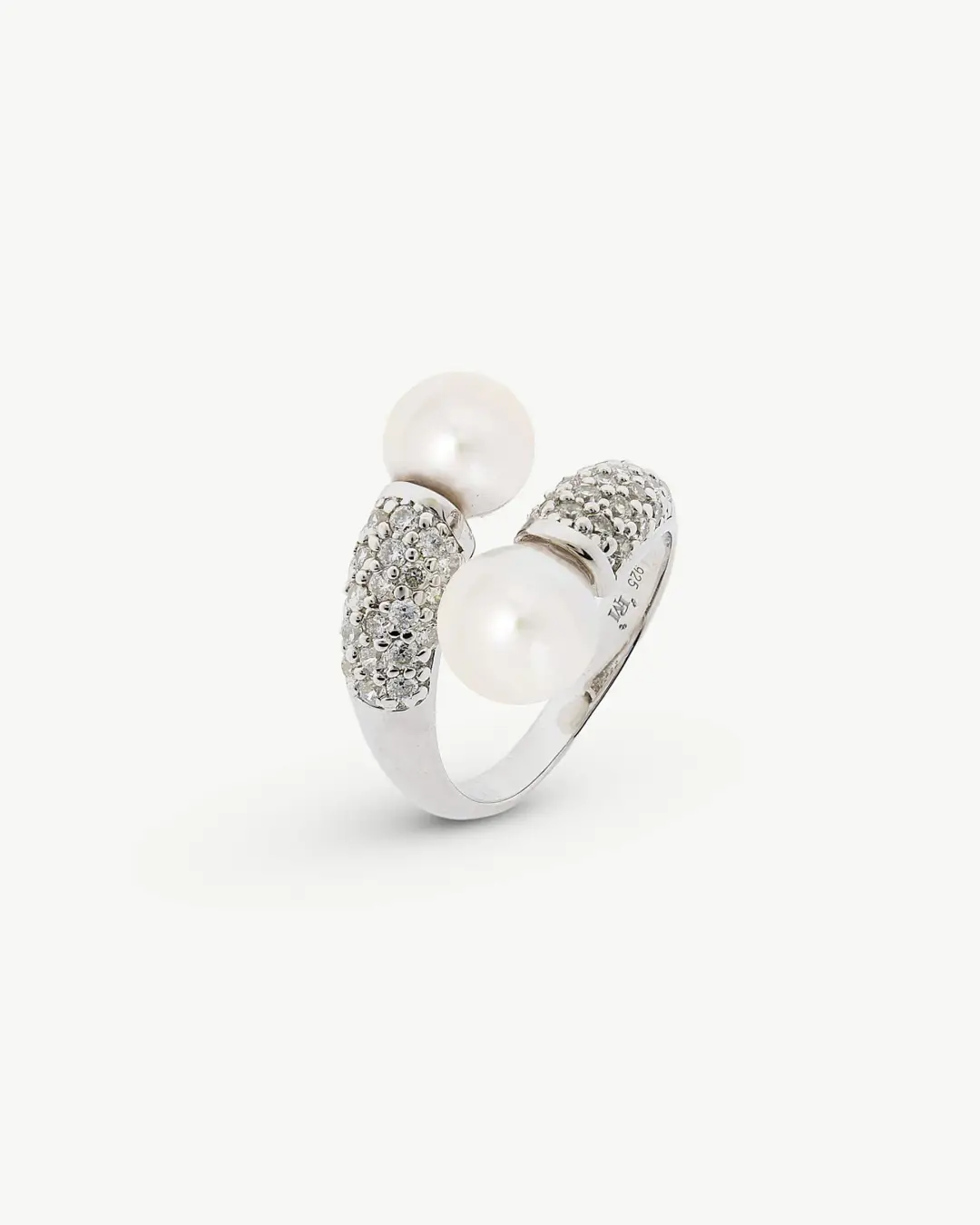 Открытое кольцо из родированного серебра, 8 мм белые круглые жемчужины и цирконы. Идеальная коллекция делает его идеальной парой.