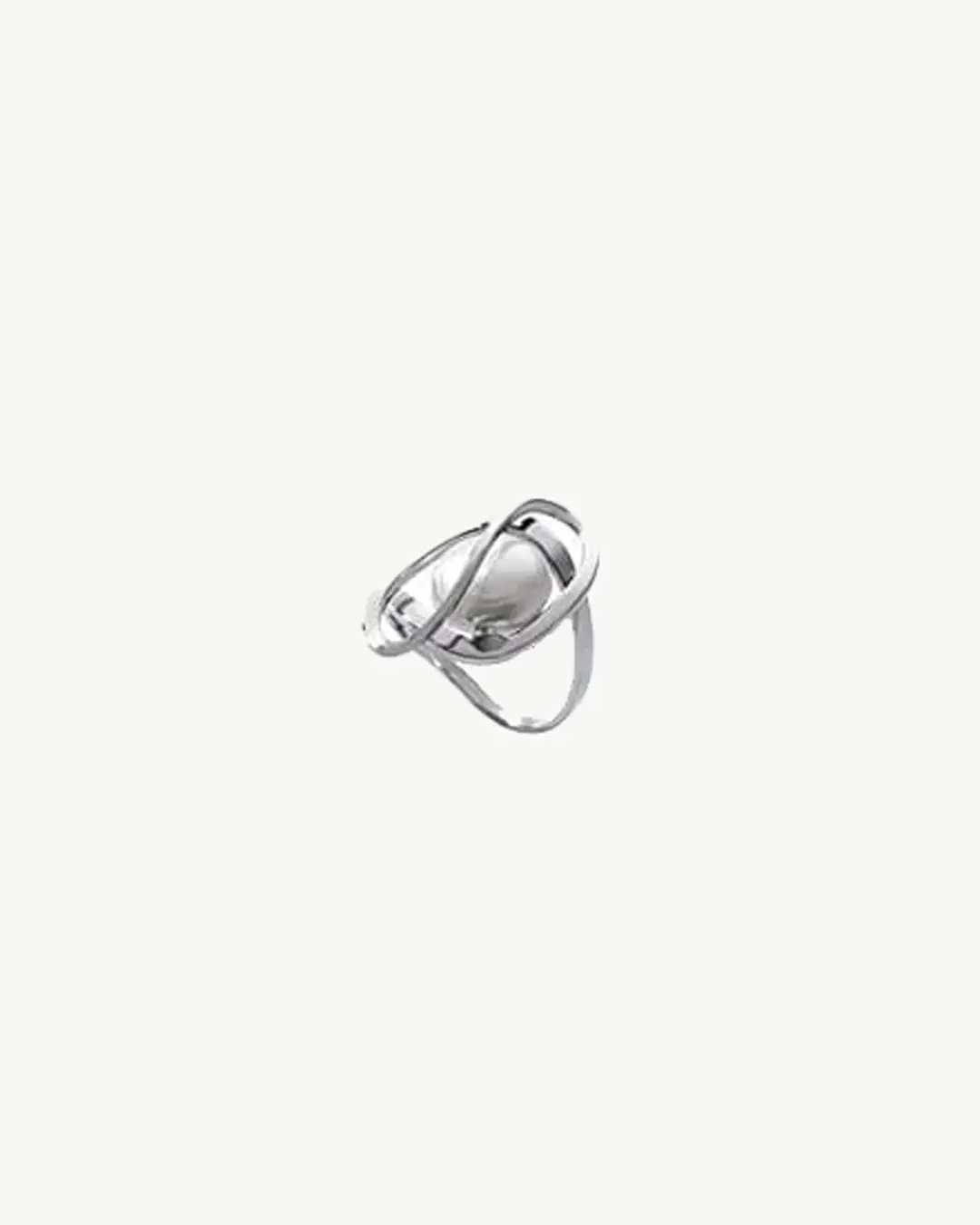 Серебряное кольцо с белой овальной жемчужиной 12 мм. Название фантастического острова использовано для названия коллекции растительных украшений, в которой жемчужина является центром тяжести и главным героем.