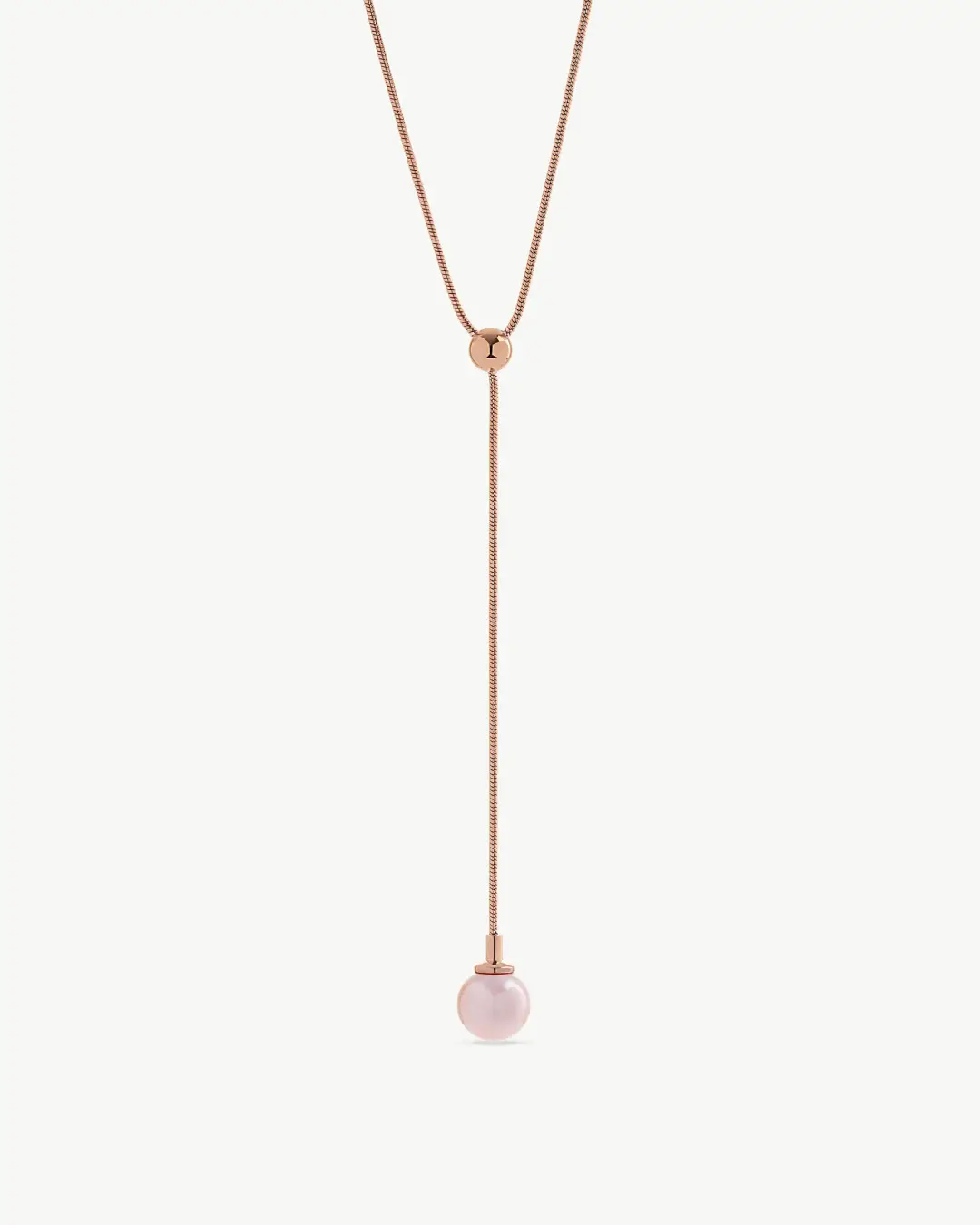 & Free ShippingЦепочка с регулируемой длинной подвеской 42/47 см из розовой стали с белой круглой жемчужиной 10мм.