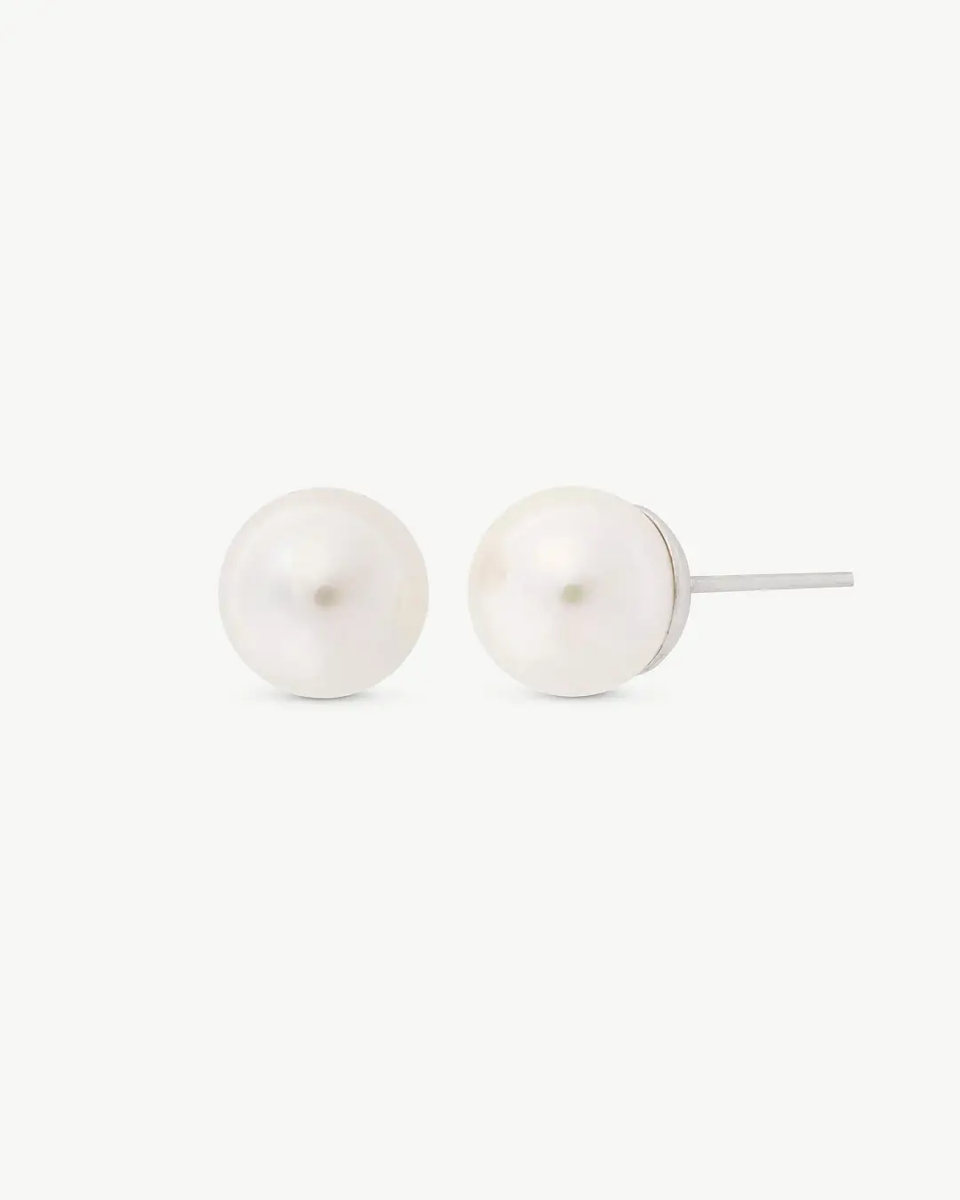 & Free ShippingСеребряные серьги-шарики с застежкой-булавкой, украшенные круглой белой жемчужиной диаметром 7 мм.
