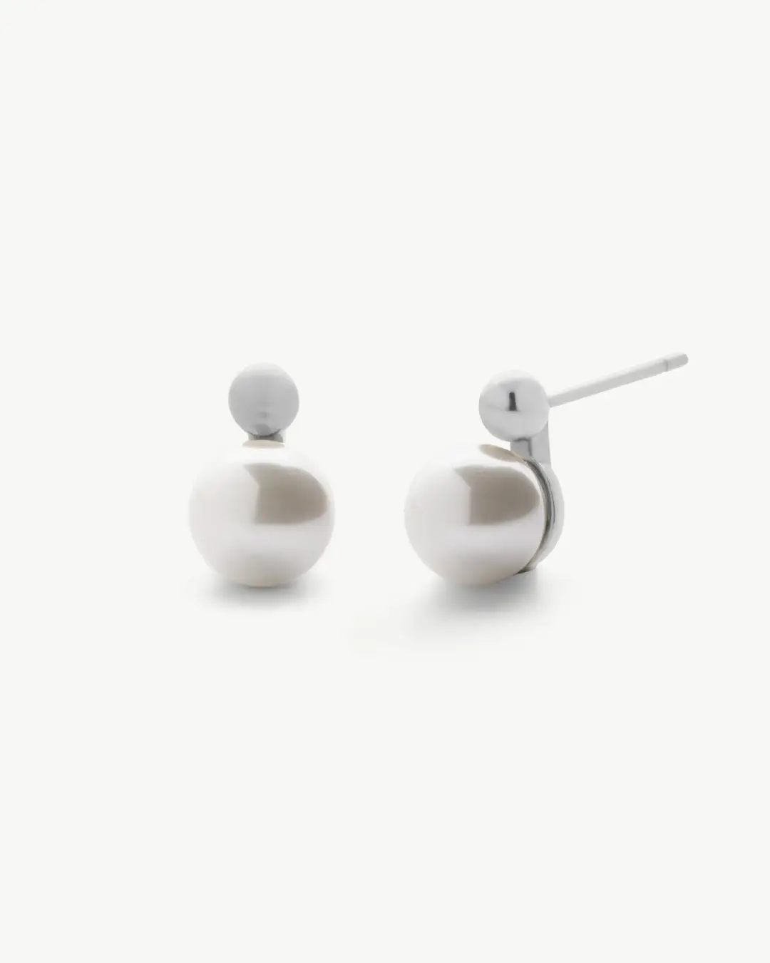 Серьги с застежкой в ​​виде стального шипа и круглой белой жемчужиной ручной работы диаметром 8 мм.