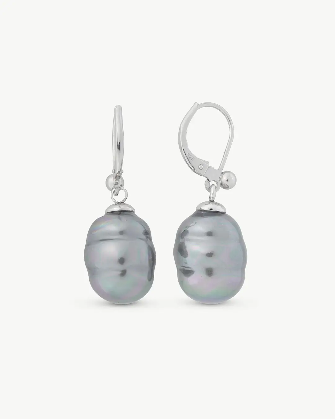 Короткие серьги с французской застежкой из родированного серебра, 12 мм серые барочные жемчужины. Украшения и жемчуг с романтичным и очень женственным дизайном.