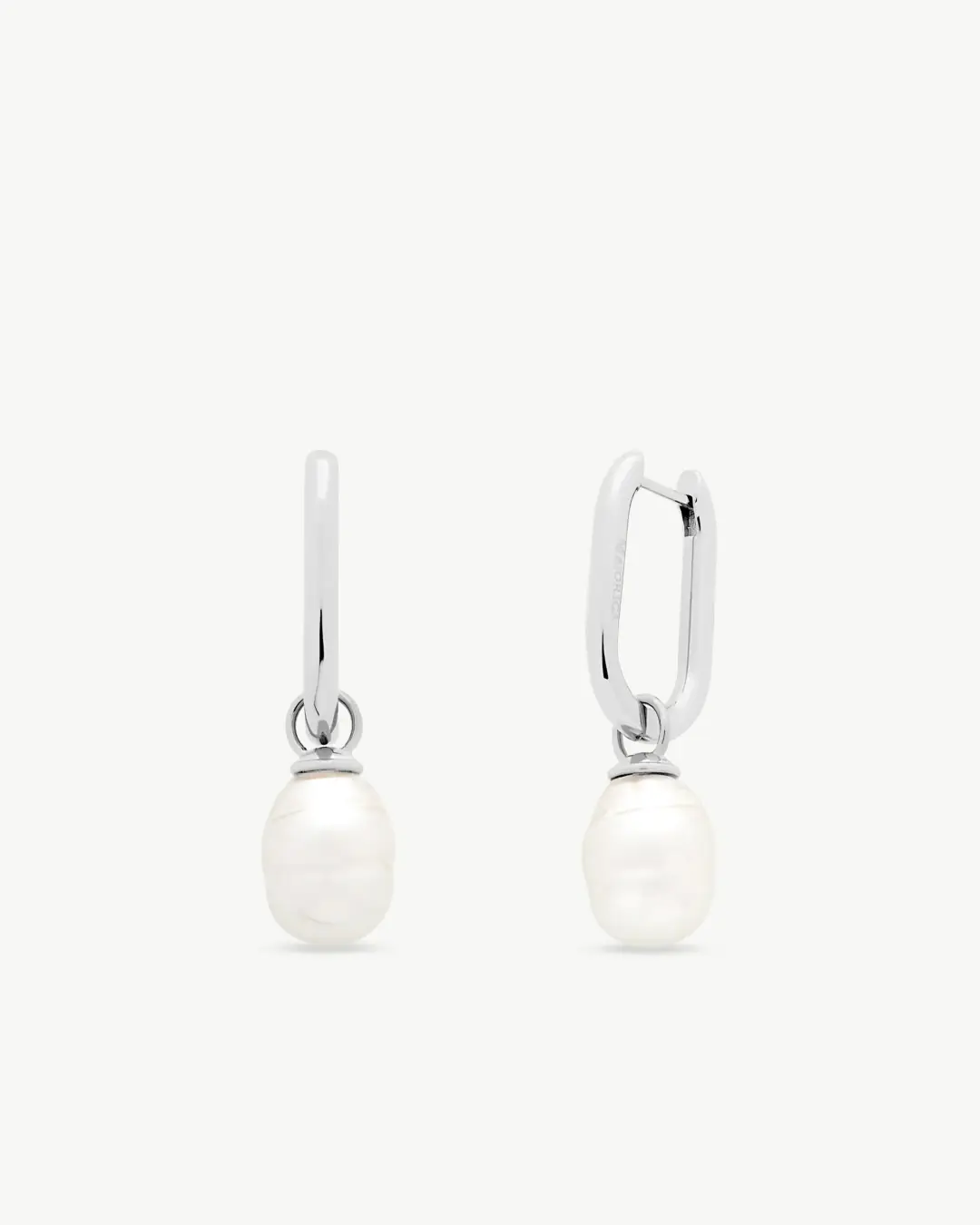 & Free ShippingКороткие серьги длиной 3,7 см с застежкой-кольцом, изготовлены из стали с белой барочной жемчужиной ручной работы диаметром 10 мм.