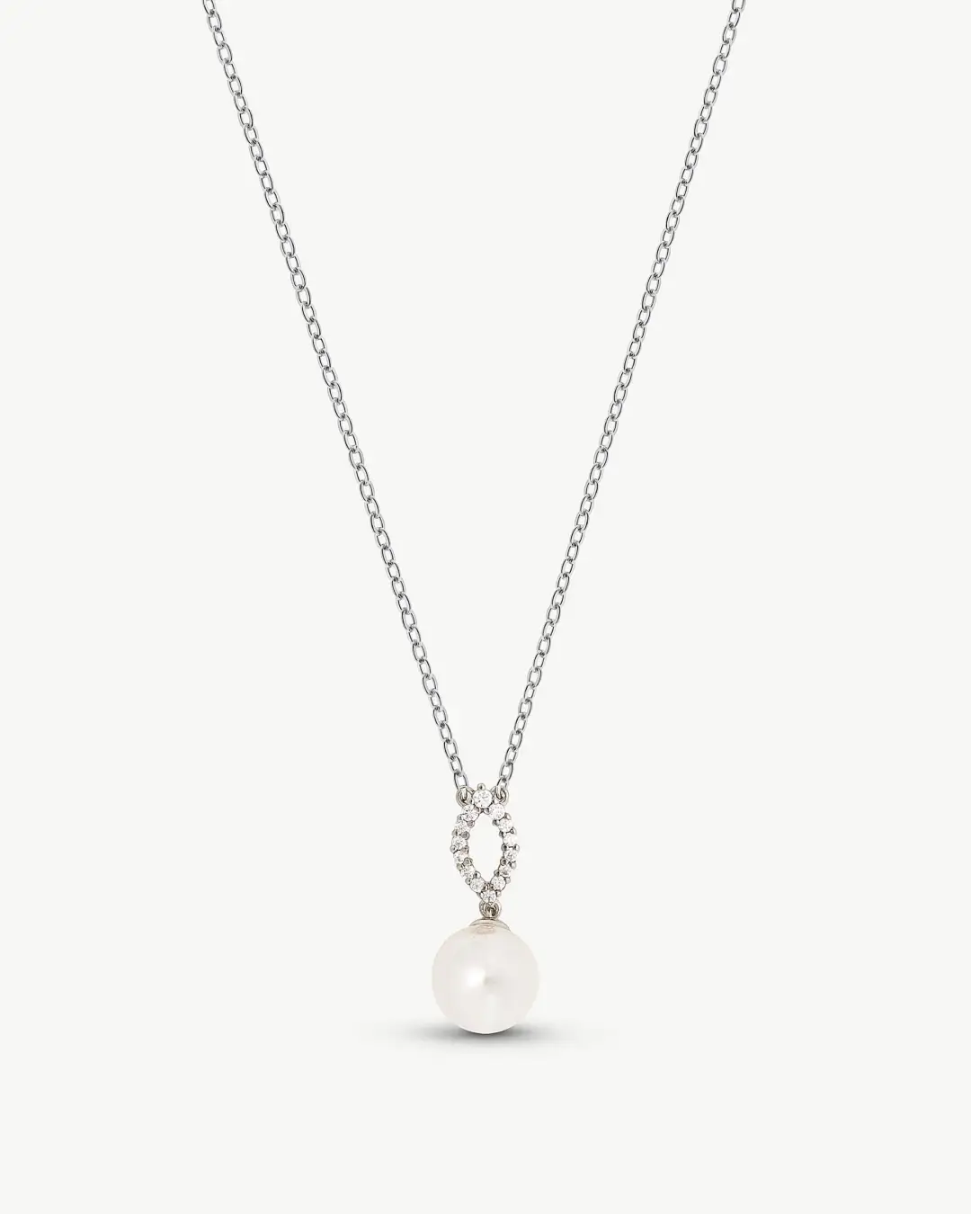 Короткое ожерелье 42/47 см из родированного серебра, 12 мм белая круглая жемчужина и цирконы. Идеальная коллекция делает его идеальной парой.