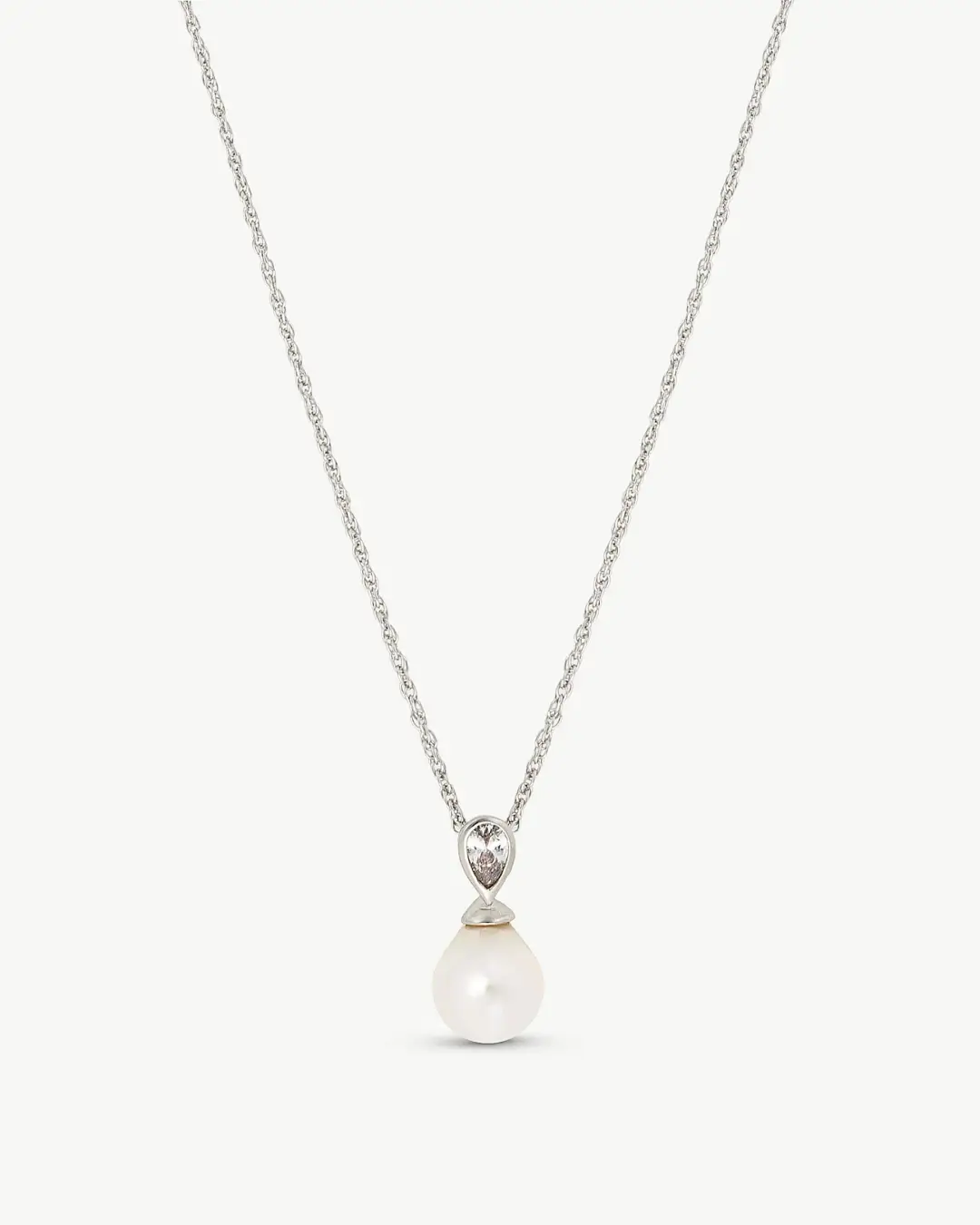 Подвеска с цепочкой 48 см из родированного серебра, 10×12 мм белая грушевидная жемчужина и цирконий. Украшения на каждый день.