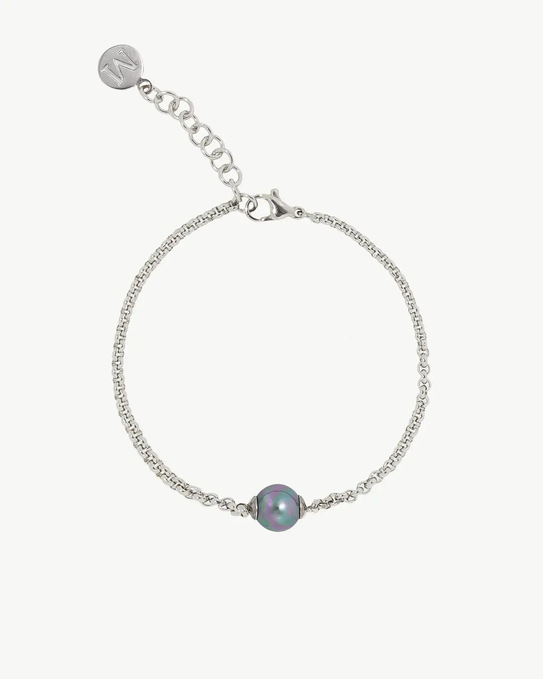 & Free ShippingБраслет из стали с родиевым покрытием, 8-миллиметровый серый круглый жемчуг. Его дизайн обеспечивает свежий и универсальный вид, позволяя вам выразить свой личный стиль для любого случая.