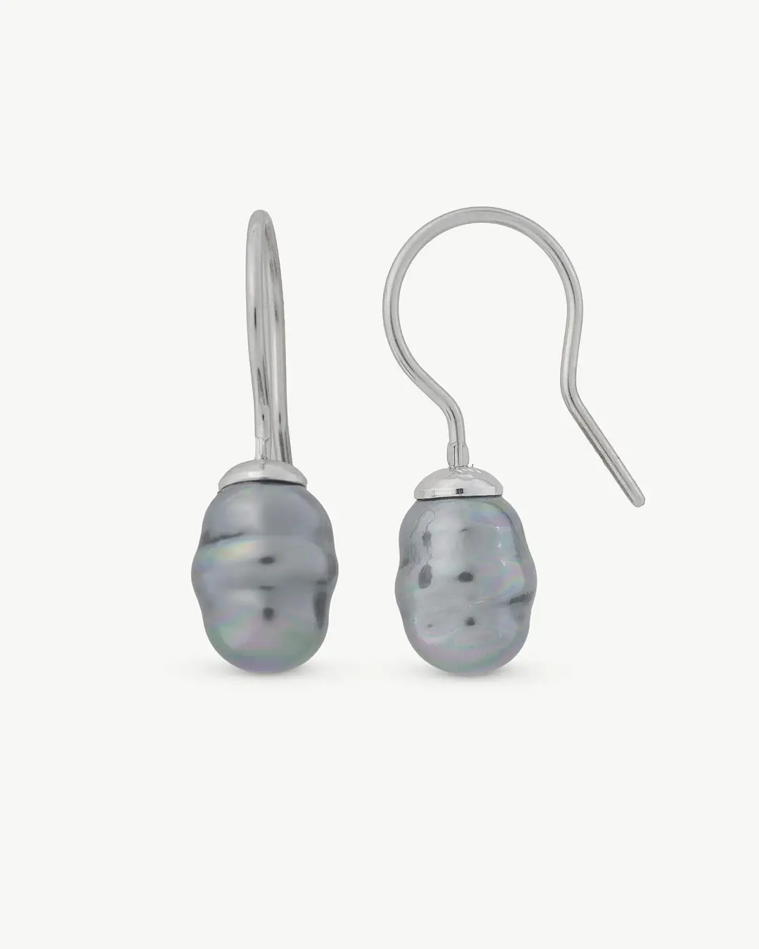 Серьги с барочным жемчугом 8 мм, серые Agora