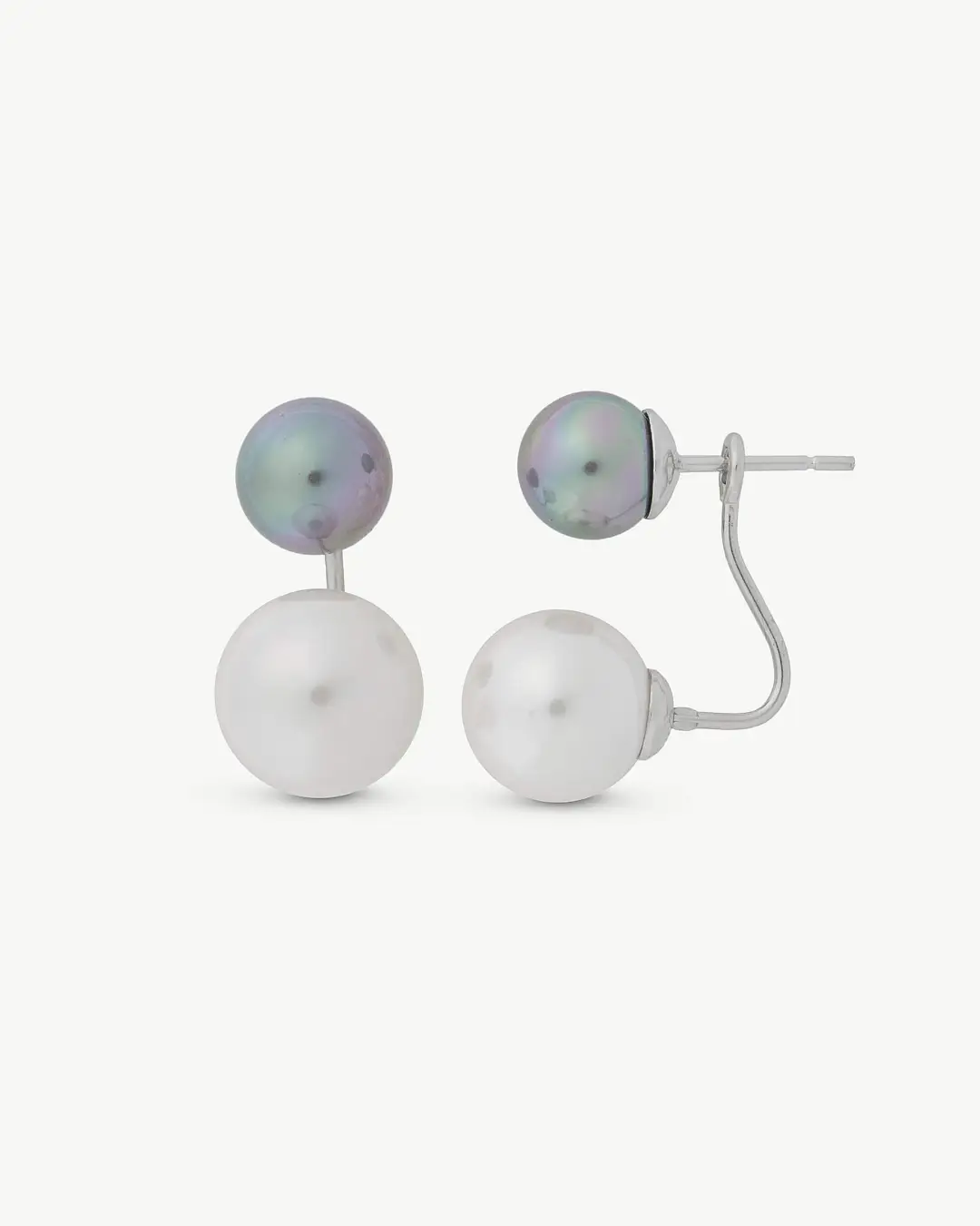 & Free ShippingКороткие серьги-шипы из родированного серебра, круглые белые и серые жемчужины 8/10 мм. Классика, которая никогда не выйдет из моды