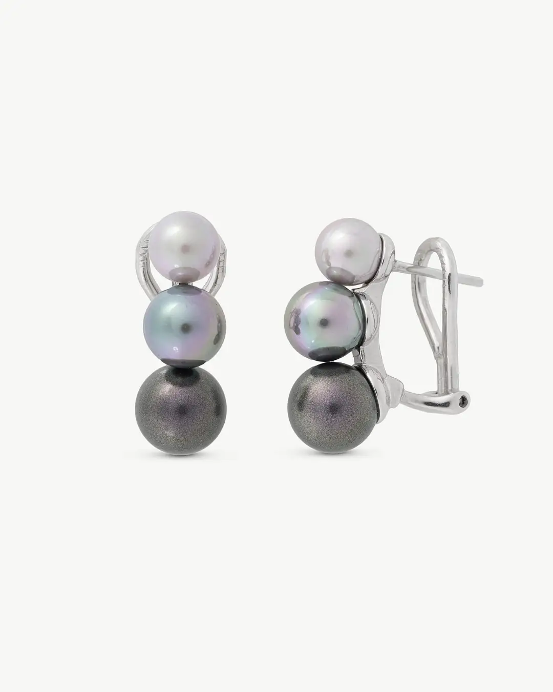 & Free ShippingКороткие серьги-гвоздики в форме омеги из родированного серебра с разноцветными круглыми жемчужинами 7/8 мм. Классика, которая никогда не выйдет из моды.