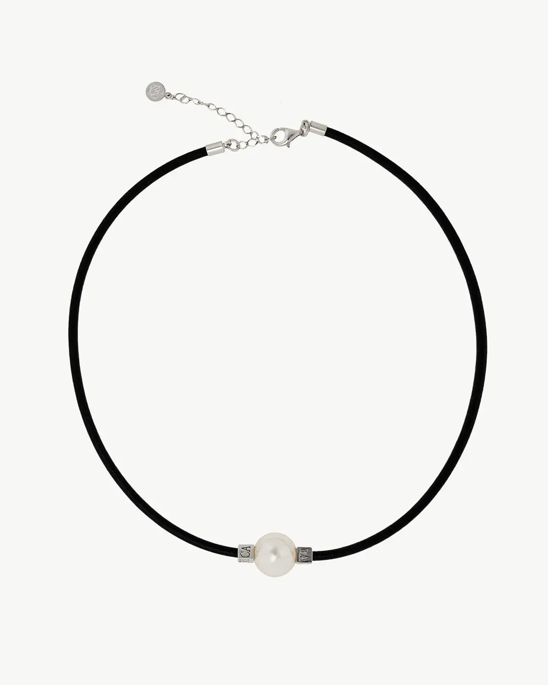 & Free ShippingКороткое кожаное ожерелье длиной 45 см из родированного серебра, 14-миллиметровый белый круглый жемчуг. Кожа и жемчуг для коллекции, которая подойдет к самым повседневным, городским и спортивным стилям и одежде.
