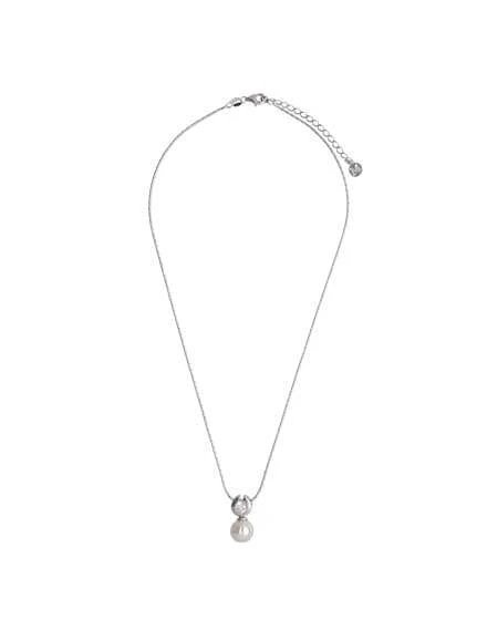 Подвеска с цепочкой 37/42 см из родированного серебра, 12 мм круглый белый измельченный жемчуг и цирконы. Наряду с жемчугом, цирконы занимают центральное место в этой изысканной коллекции.